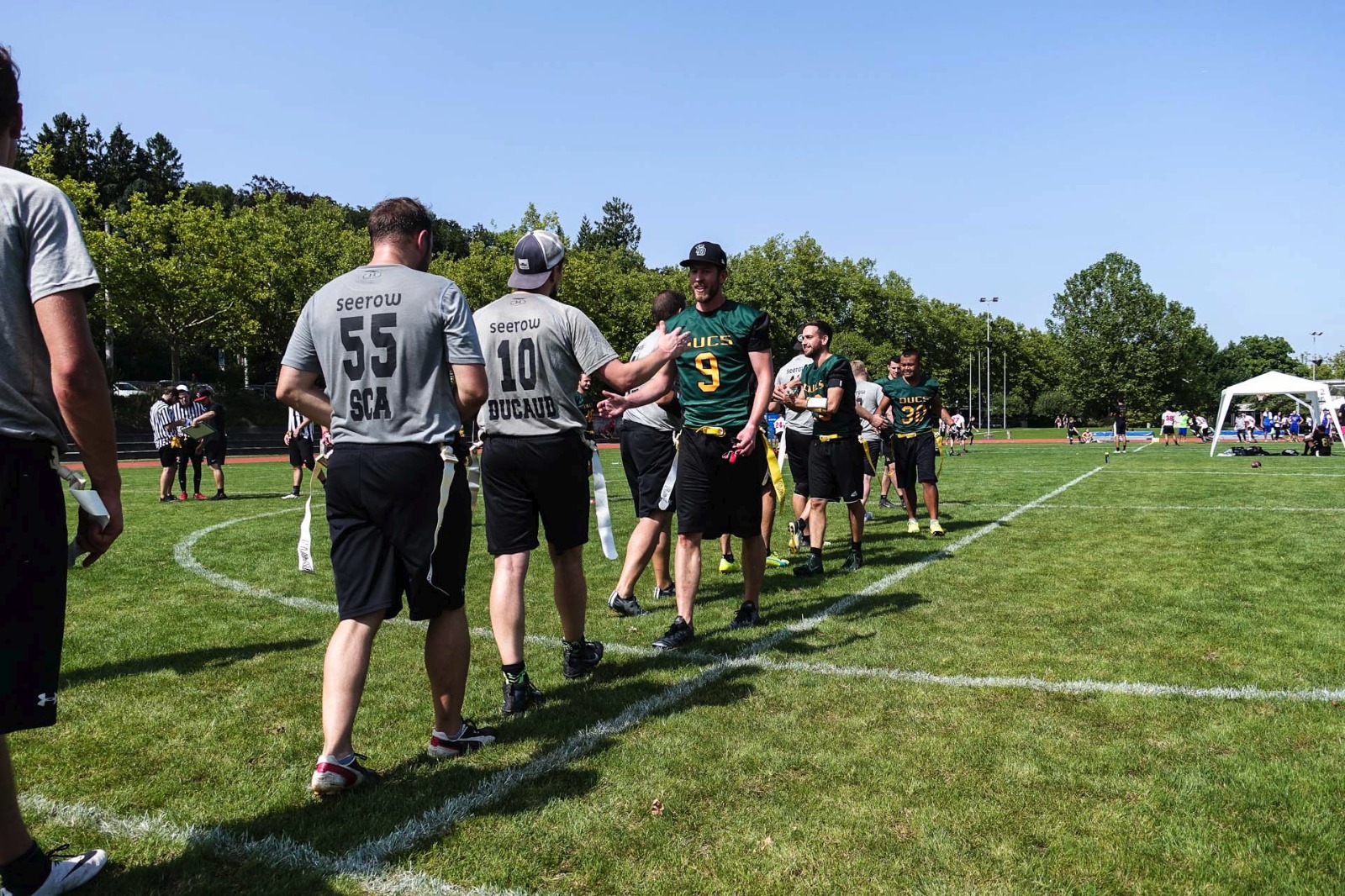 Die Offense nutze unsere Vorteile sofort aus und spielte mit hoher Kadenz und hohem Tempo. Alain liess die Gegner reihenweise stehen, da sie mit der Flinkheit und den Cuts schlichtweg überfordert waren. In der zweiten Halbzeit übernahm Noe das Ruder als QB und dirigierte einen tadellosen TD-Drive. Den Extrapunkt versuchte er auf nonchalante Weise zu erzielen und musste „in extremis“ einen 2 Punktereturn der Ducs verhindern.